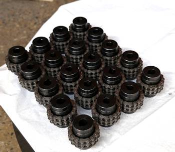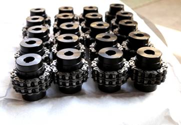 特點(diǎn):鏈條聯(lián)軸器具有結構簡(jiǎn)單(四個(gè)件組成)、裝拆方便、拆卸時(shí)不用移動(dòng)被聯(lián)接的兩軸、尺寸緊湊、質(zhì)量輕、有一定補償能力、對安裝精度要求不高、工作可靠、壽命較長(cháng)、成本較低等優(yōu)點(diǎn)。滾子鏈聯(lián)軸器 可用于紡織、農機、起重運輸、工程、礦山、輕工、化工等機械的軸系傳動(dòng),適用于高溫、潮濕和多塵工況環(huán)境,不適用高速、有劇烈沖擊載荷和傳遞軸向力的場(chǎng)合,鏈條聯(lián)軸器應在良好的潤滑并有防護罩的條件下工作。鏈條聯(lián)軸器是利用公用的鏈條,同時(shí)與兩個(gè)齒數相同的并列鏈輪嚙合,不同結構型式的鏈條聯(lián)軸器主要區別是采用不同的鏈條,常見(jiàn)的有雙排滾子鏈聯(lián)軸器、單排滾子鏈聯(lián)軸器、齒形鏈聯(lián)軸器、尼龍鏈聯(lián)軸器等。雙排滾子鏈聯(lián)軸器性能優(yōu)于其他結構型式的聯(lián)軸器,為國內外廣泛采用KC系列鏈輪聯(lián)軸器,我國亦已制訂為國家標準GB6069-2002 。