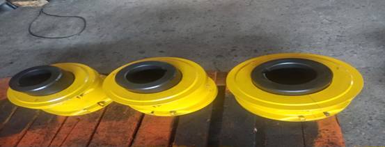 2.安裝過(guò)盈配合的聯(lián)軸器(1100~1220)時(shí),沒(méi)有固定螺釘。使用烤爐、噴燈、感應加熱器或油池來(lái)加熱輪轂,*高到135℃,超過(guò)200℃,將要損壞密封件。直接加熱輪轂孔時(shí),需要保持恒定運動(dòng),以免使某一區域過(guò)熱。