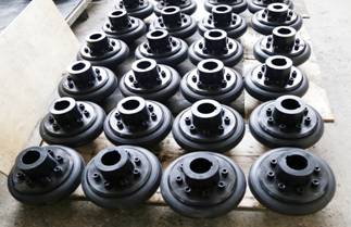 輪胎聯(lián)軸器分為凸型輪胎聯(lián)軸器和凹型輪胎聯(lián)軸器兩大類(lèi),凸型輪胎聯(lián)軸器又分為帶骨架整體式輪胎聯(lián)軸器、無(wú)骨整體式輪胎聯(lián)軸器和徑向切口式輪胎聯(lián)軸器三種。輪胎環(huán)內側用硫化方法與鋼質(zhì)骨架粘接成一體,骨架上的螺栓孔處焊有螺母。