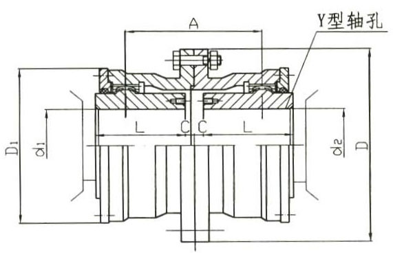 ?。尚停芊舛藶榉蛛x型,齒間距較大,可以允許較大的徑向位移,可與Y、J1、Z1型軸伸聯(lián)接。