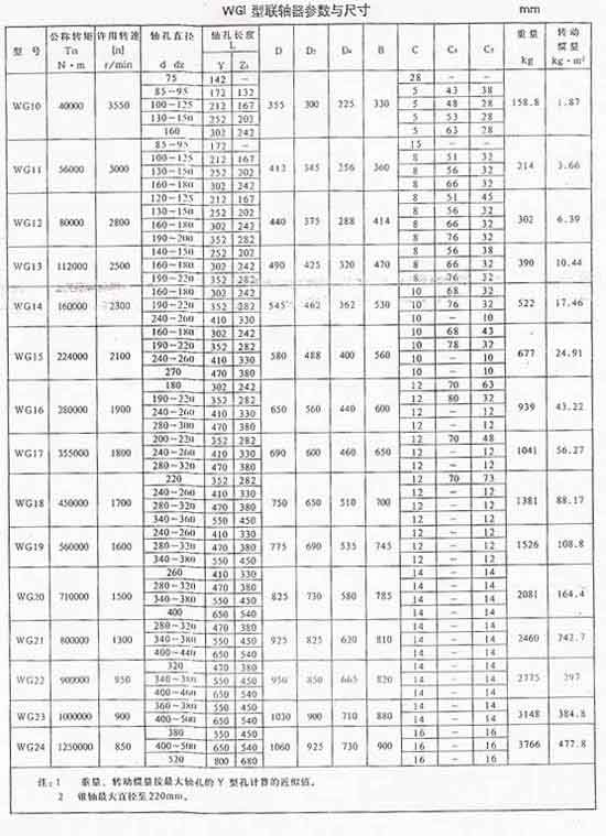 WG I型鼓形齒式聯(lián)軸器基本參數和主要尺寸