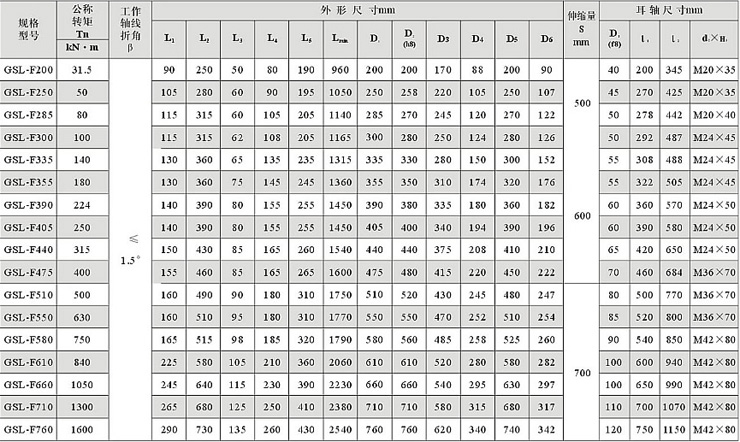 GSL-F反裝長(cháng)伸縮鼓形齒聯(lián)軸器的參數及主要尺寸:(JB/T 10540-2006) mm
