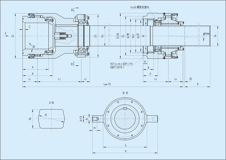 注2:聯(lián)軸器*短長(cháng)度的確定公式:Lmin=L1+L2+L3+L4+L5+L'(此表中,中間軸長(cháng)度L'按0計算),實(shí)際安裝長(cháng)度(含伸縮量)根據用戶(hù)的實(shí)際需要確定。