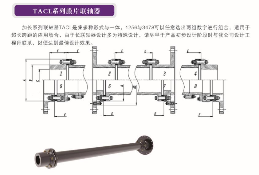 聯(lián)軸器型號 功率 / 轉速 (Kw/rpm) 公稱(chēng)扭矩 (KNm) 峰值扭矩 (KNm) A (mm) AG (mm) B (mm) C max (mm) F (mm) Wmax (mm) W 可選 20# 尺寸 ( 無(wú)縫管 ) W 可選 16Mn 尺寸 ( 無(wú)縫管 ) TACL6247 1.28 12.22 32 247 297 182 130 140......