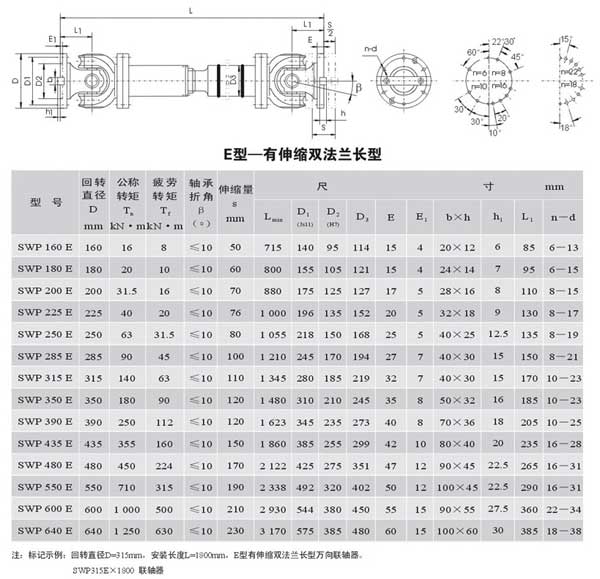 萬(wàn)向聯(lián)軸器,E型有伸縮法蘭長(cháng)型萬(wàn)向聯(lián)軸器......